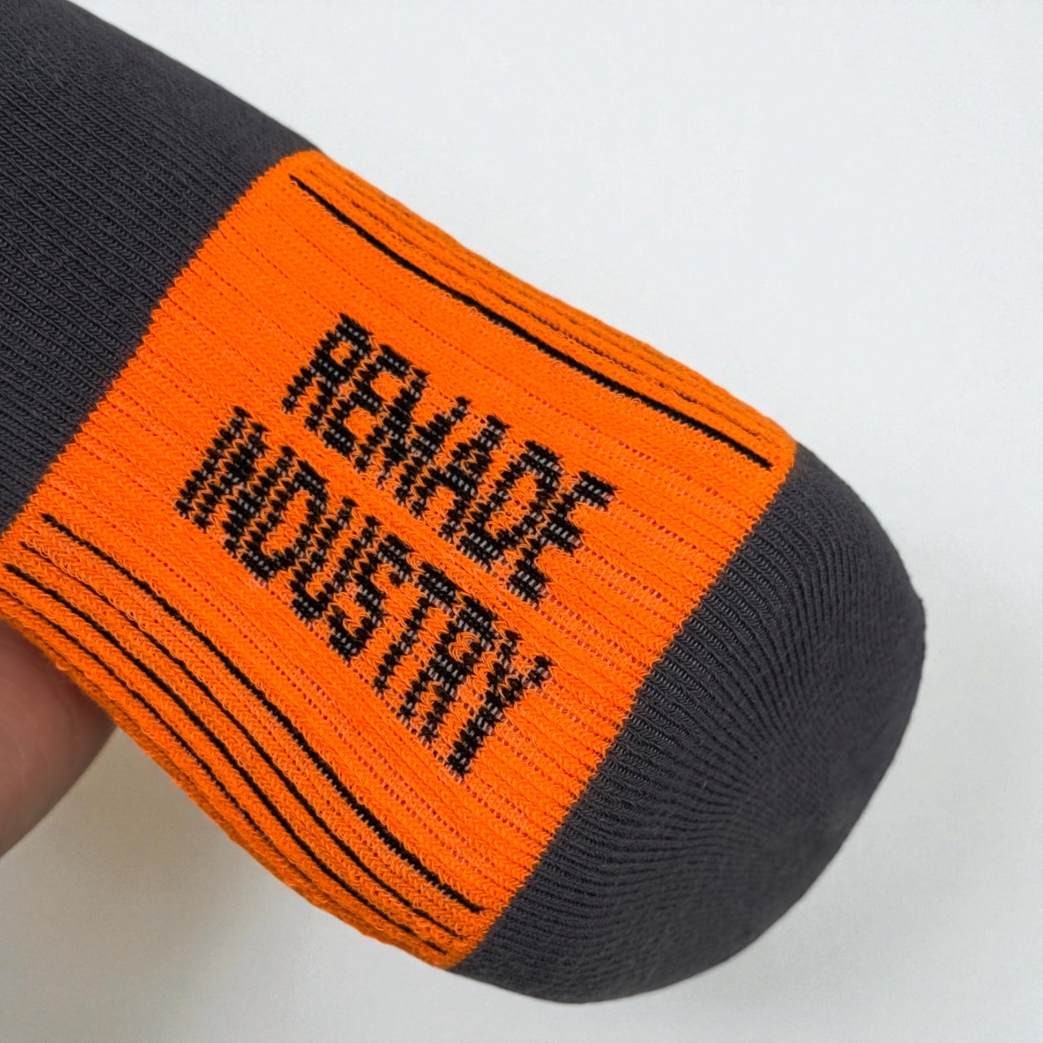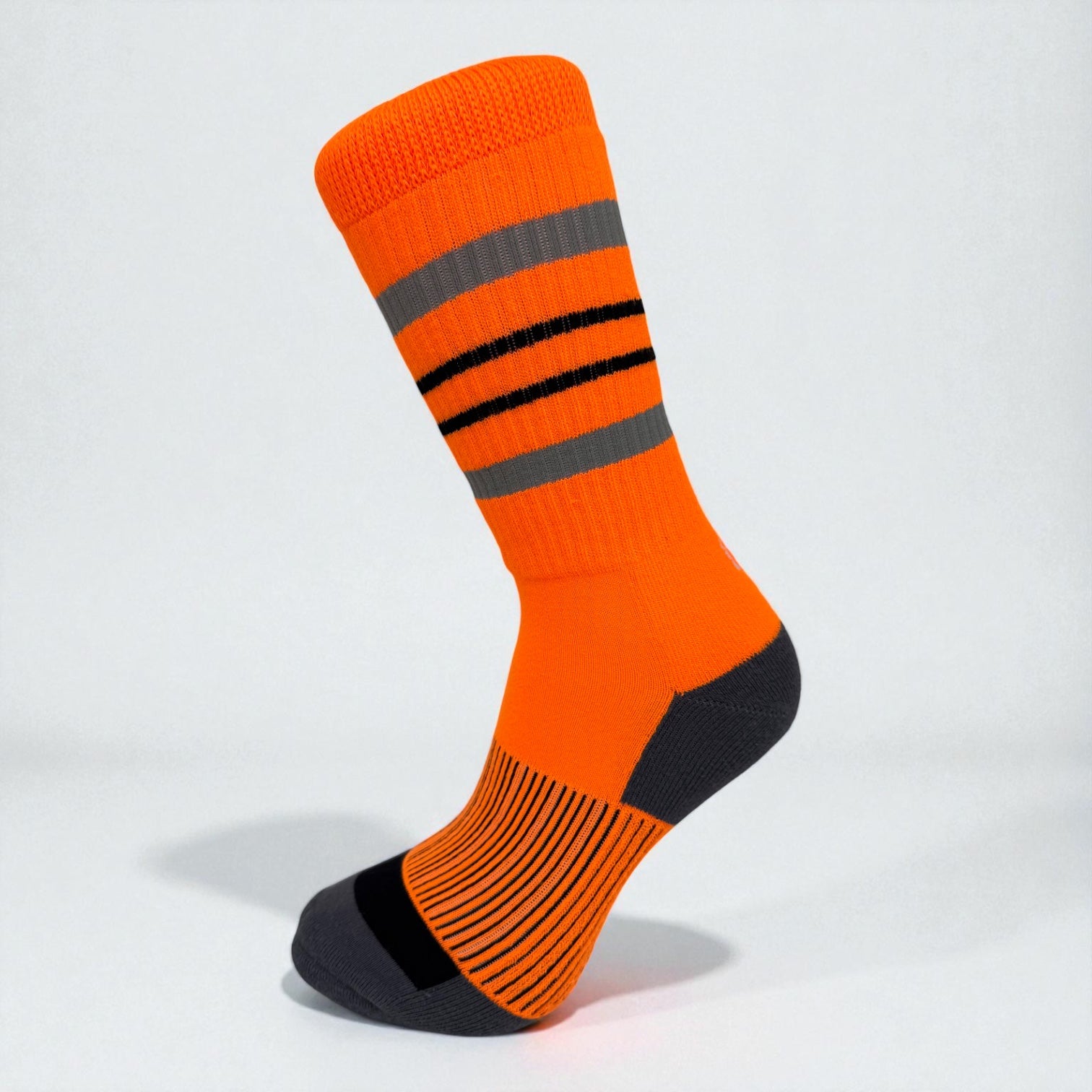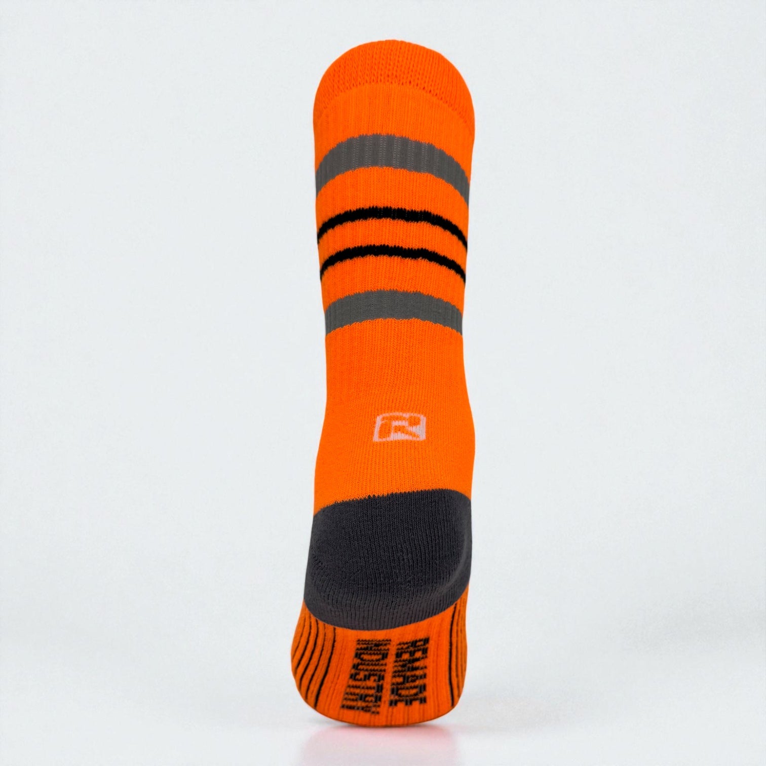 Onze Bouwsokken zijn er voor wie vroeg begint, laat doorgaat en nooit half werk levert. Ze zijn gemaakt van gerecyclede materialen en hebben dezelfde kwaliteit en pasvorm als onze Remade werk- en zorgsokken, uitgevoerd in helder oranje – zichtbaar, stevig en vol energie.