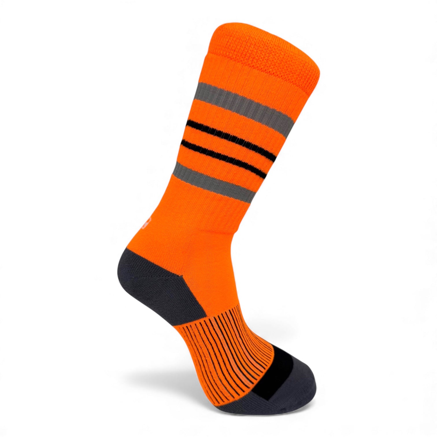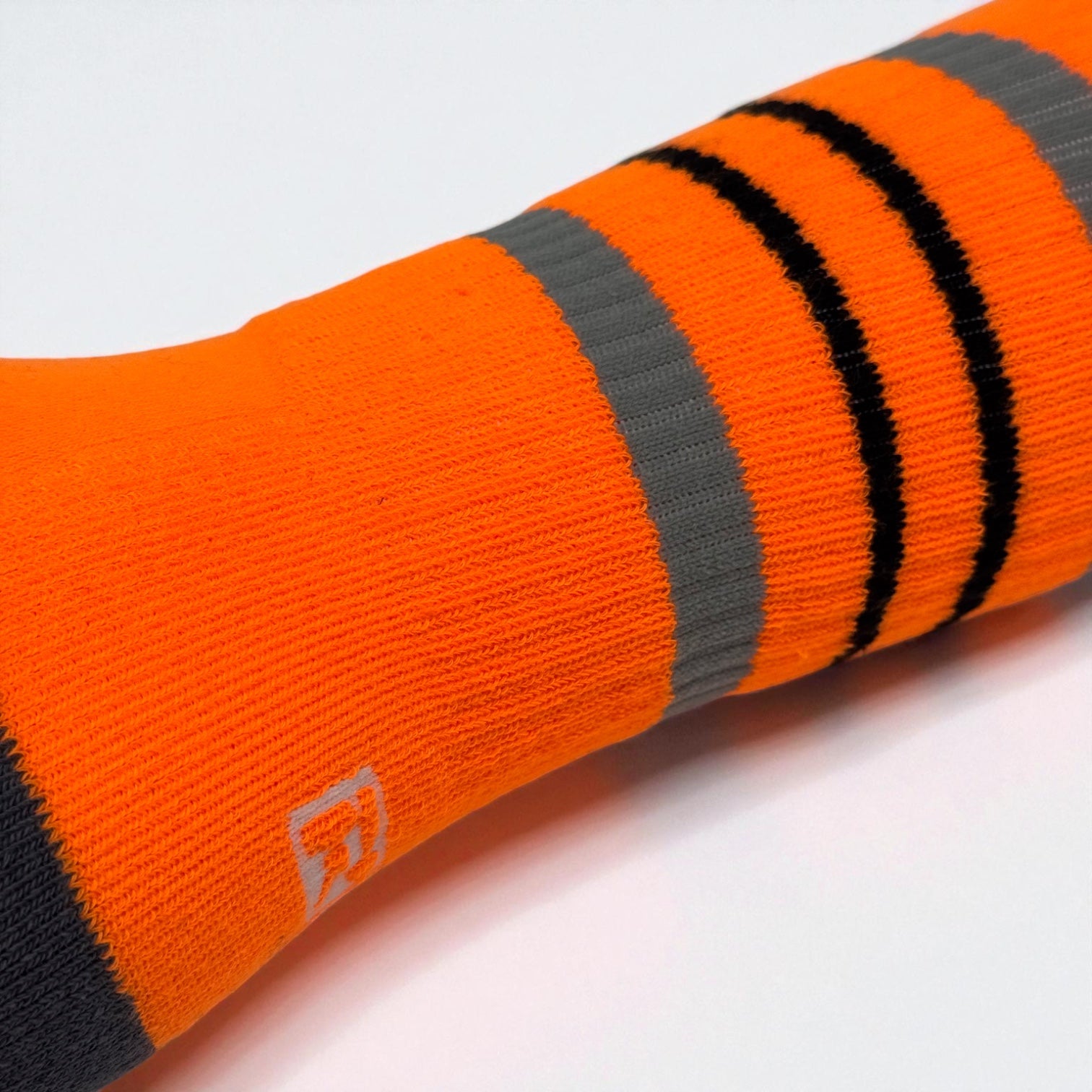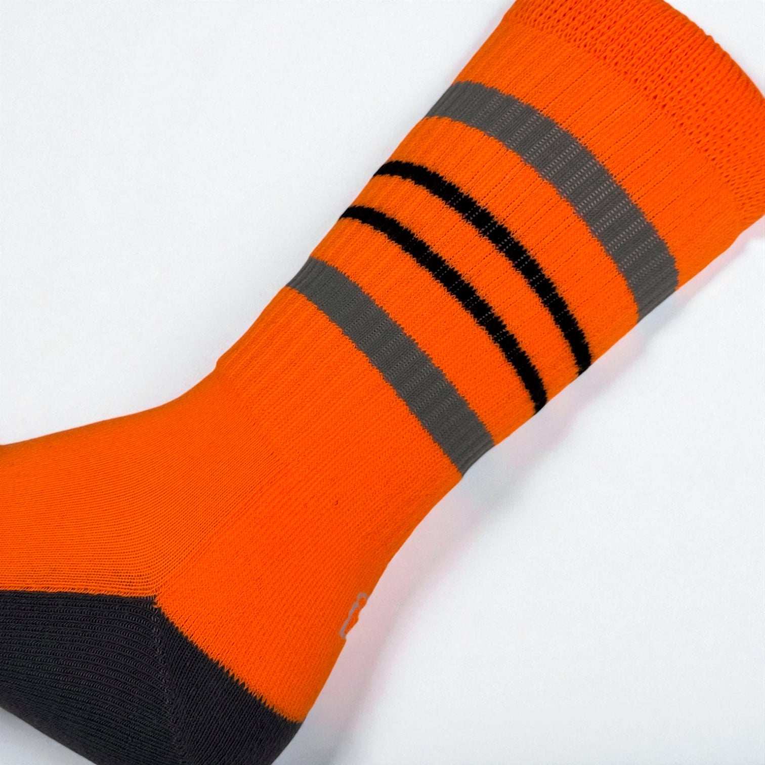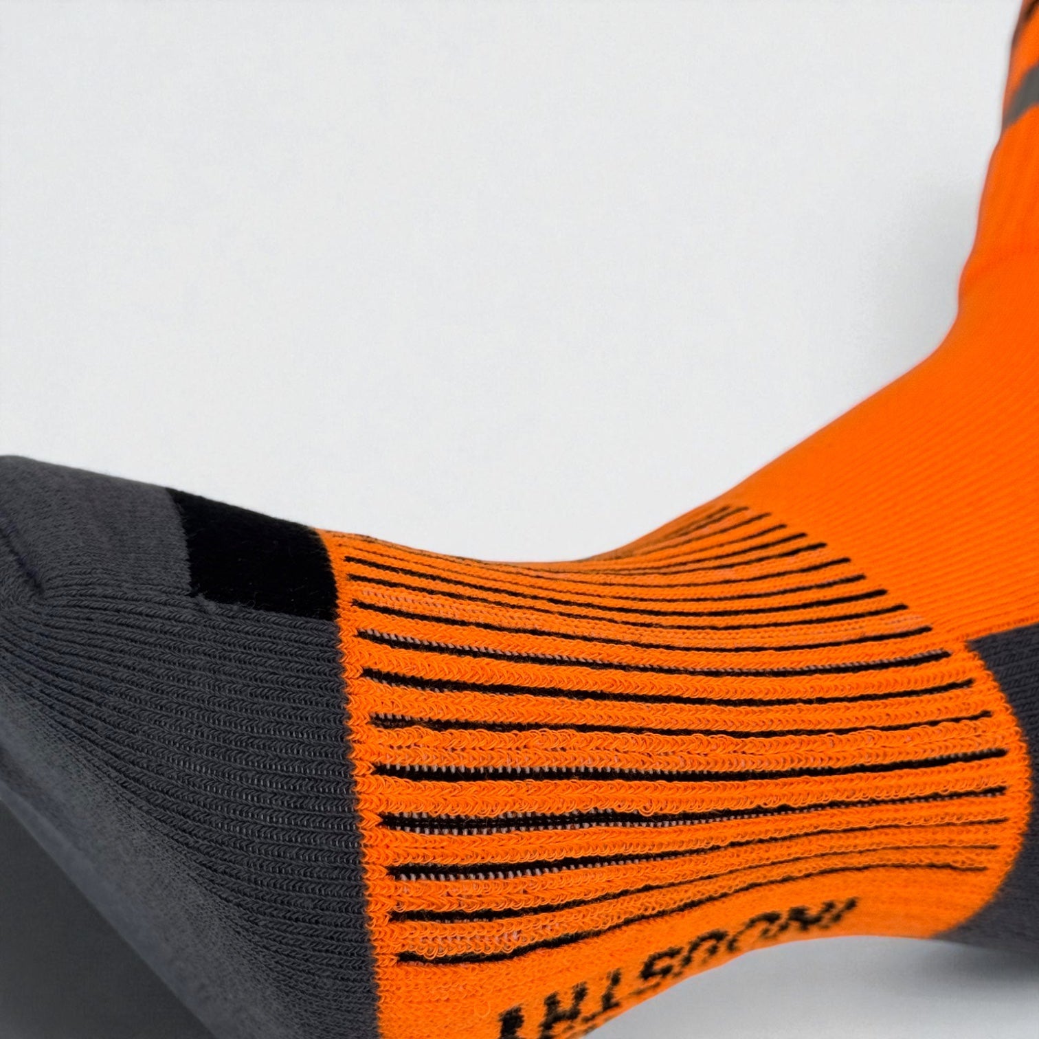 Onze Bouwsokken zijn er voor wie vroeg begint, laat doorgaat en nooit half werk levert. Ze zijn gemaakt van gerecyclede materialen en hebben dezelfde kwaliteit en pasvorm als onze Remade werk- en zorgsokken, uitgevoerd in helder oranje – zichtbaar, stevig en vol energie.