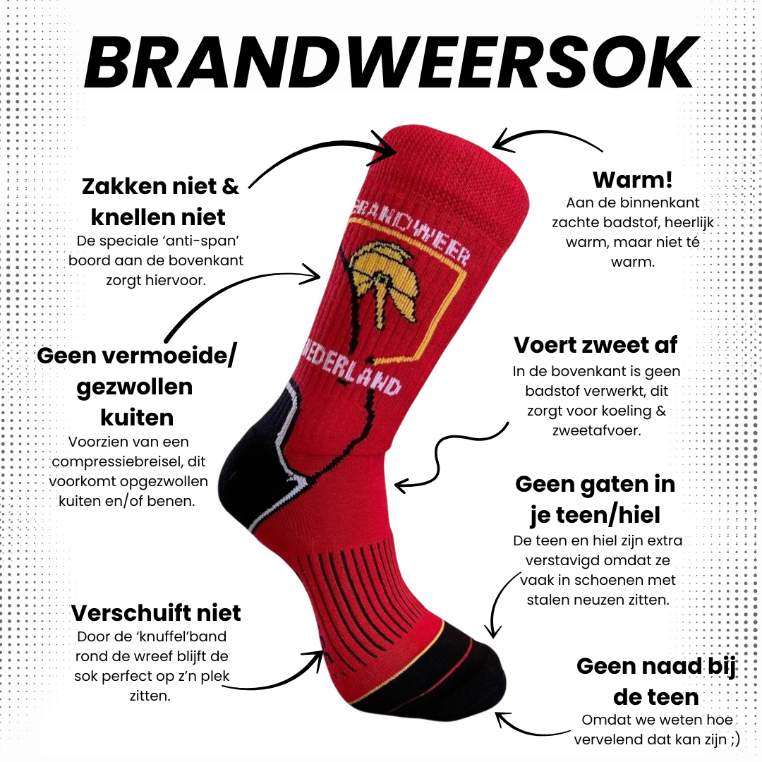 Onze brandweersokken zijn inmiddels uitgegroeid tot een echte publieksfavoriet. Wat begon als een ode aan de helden van de brandweer, wordt inmiddels gedragen door mensen uit allerlei hoeken – van kazerne tot kantoor.
