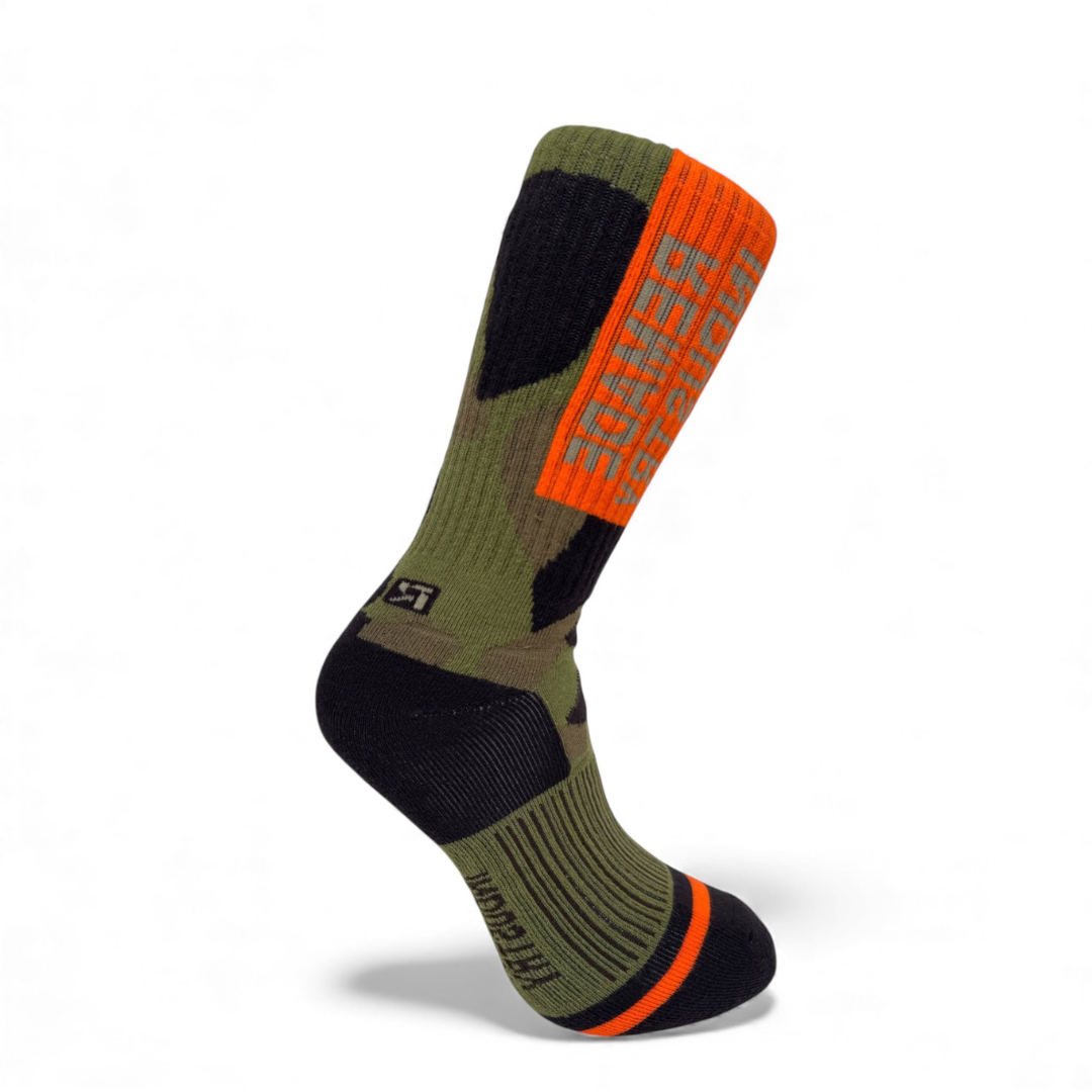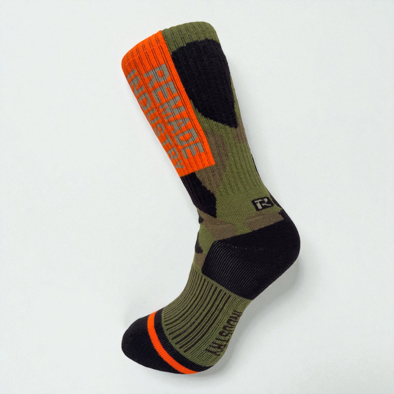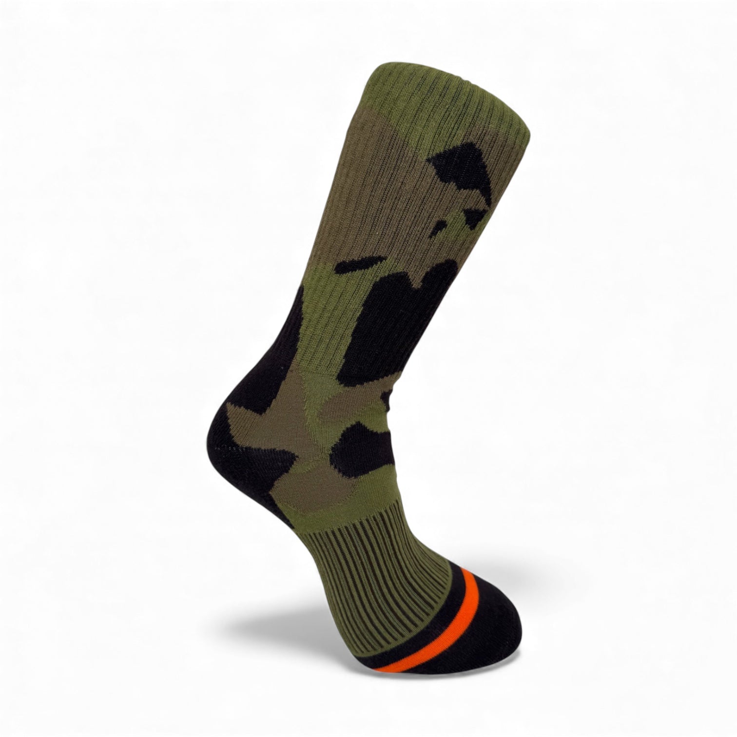 Onze Defensiesokken zijn gemaakt voor wie stevig in zijn schoenen moet staan. Wat begon als een ode aan het werk in uniform, wordt inmiddels gedragen door mensen van basis tot kantoor. Ze hebben dezelfde pasvorm en kwaliteit als onze bekende Remade werk- en zorgsokken, gemaakt van gerecyclede materialen met een stoere camouflage-look en opvallend oranje detail.